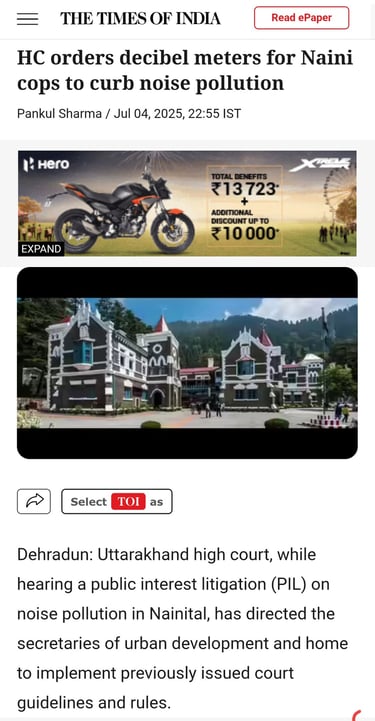 She has filed a Public Interest Litigation in her personal capacity addressing severe noise pollution in Nainital.